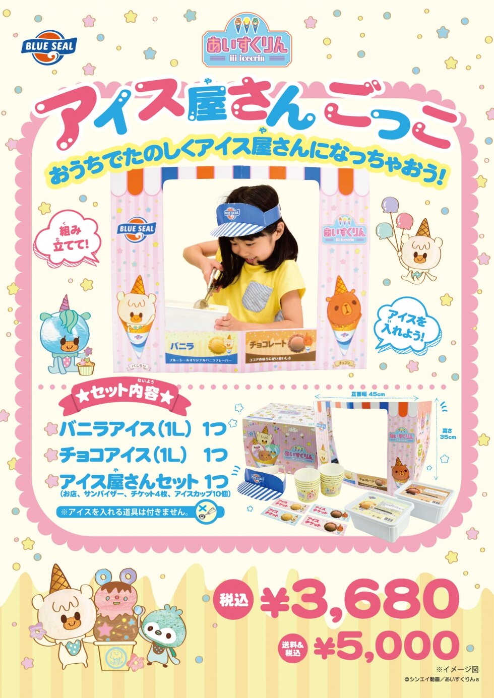 iiiあいすくりんのキャラクターたちが可愛くあしらわたアイス屋さんセットと、本物のアイスで楽しく盛り上がろう!