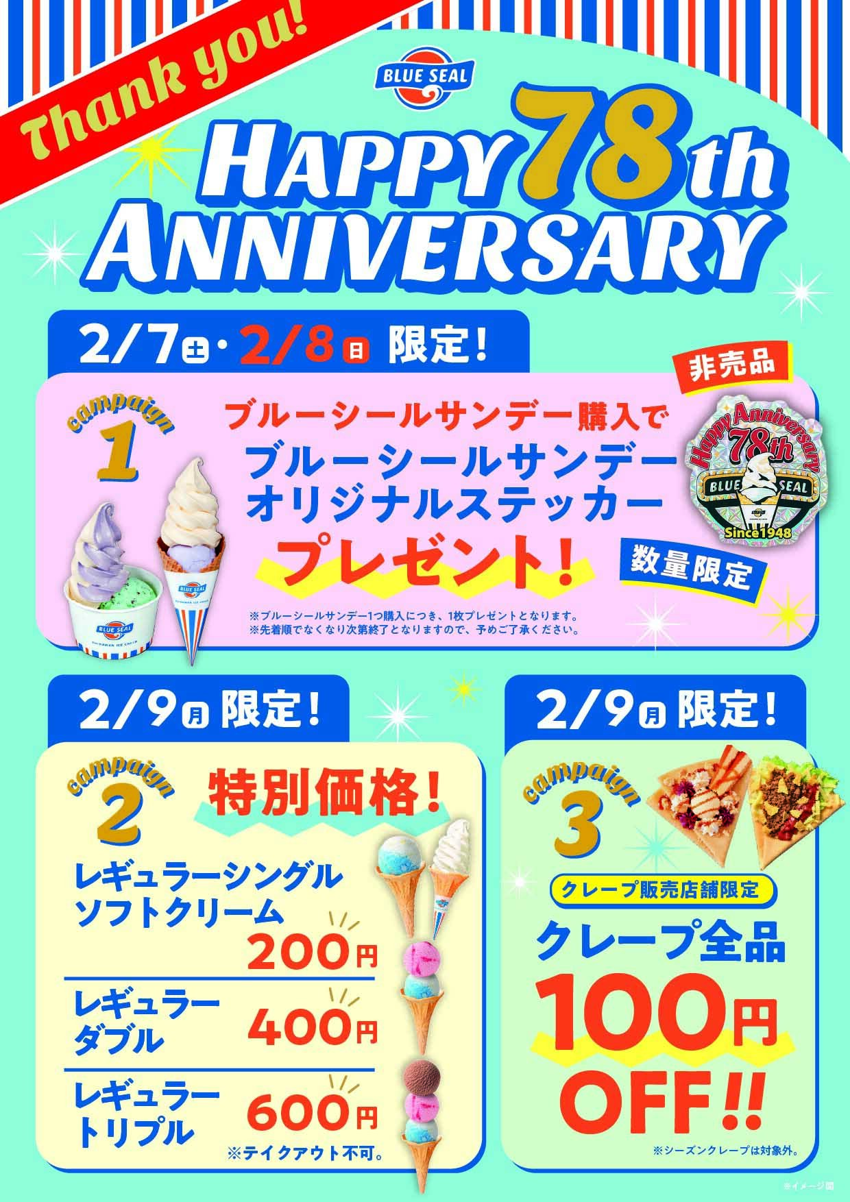 2026年2月9日(月)、ブルーシールはおかげさまで創業78周年を迎えます。